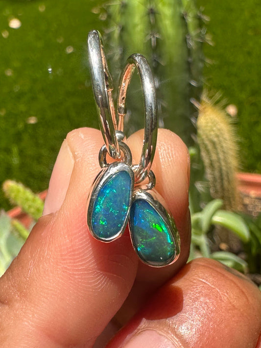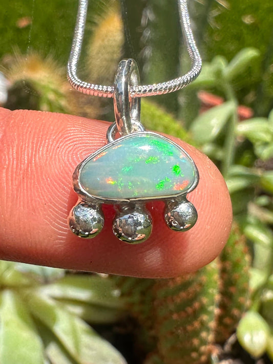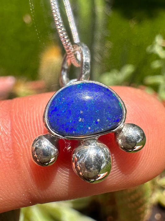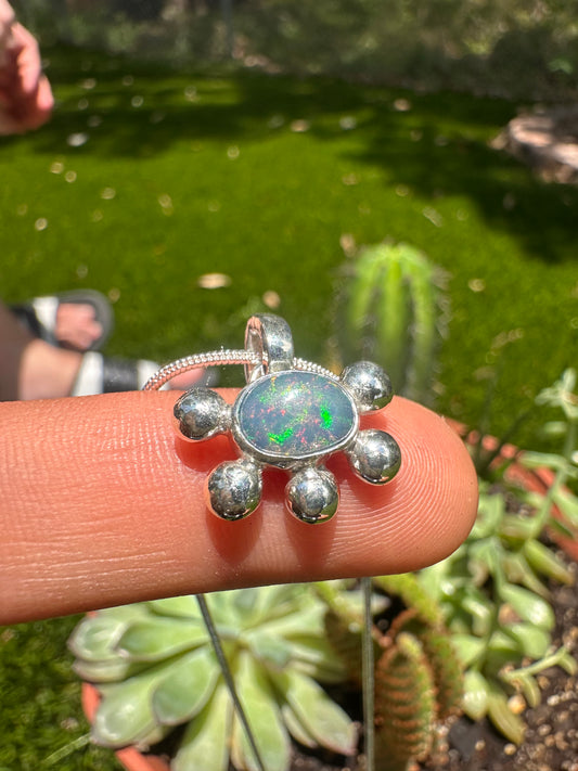 Handcrafted Opal Doublet Bubble Pendant Sterling Silver Necklace on 16" Snake Chain