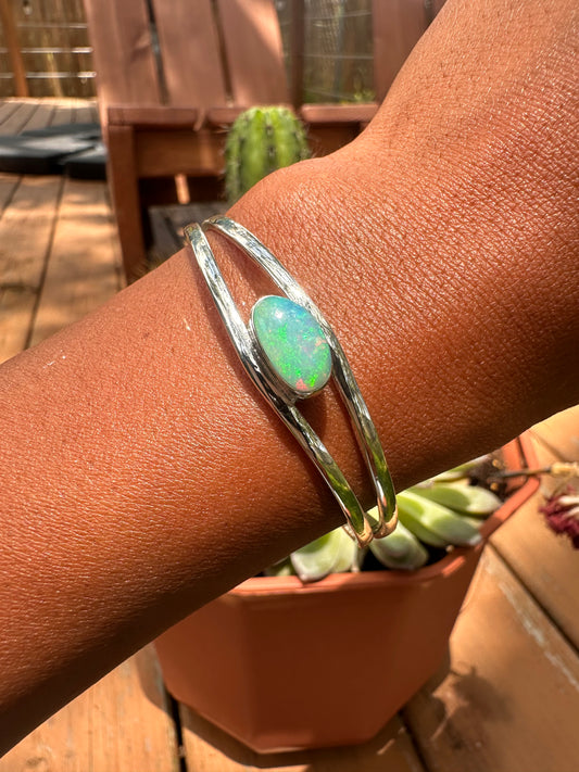 Handcrafted Opal Doublet Sterling Silver Cuff Bracelet