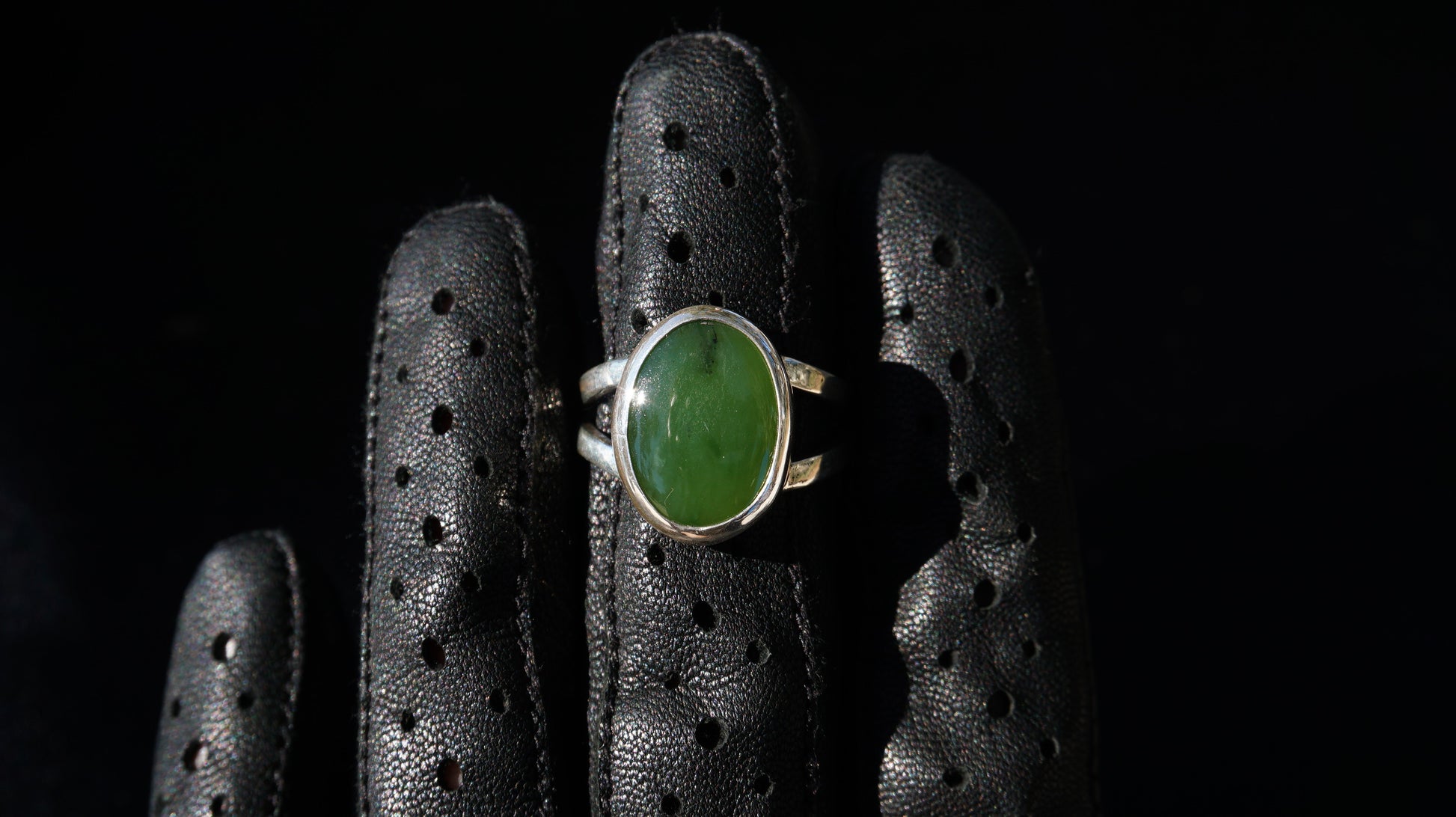 Nice simple split shank ring featuring Canadian Nephrite Jade cut in the 80's